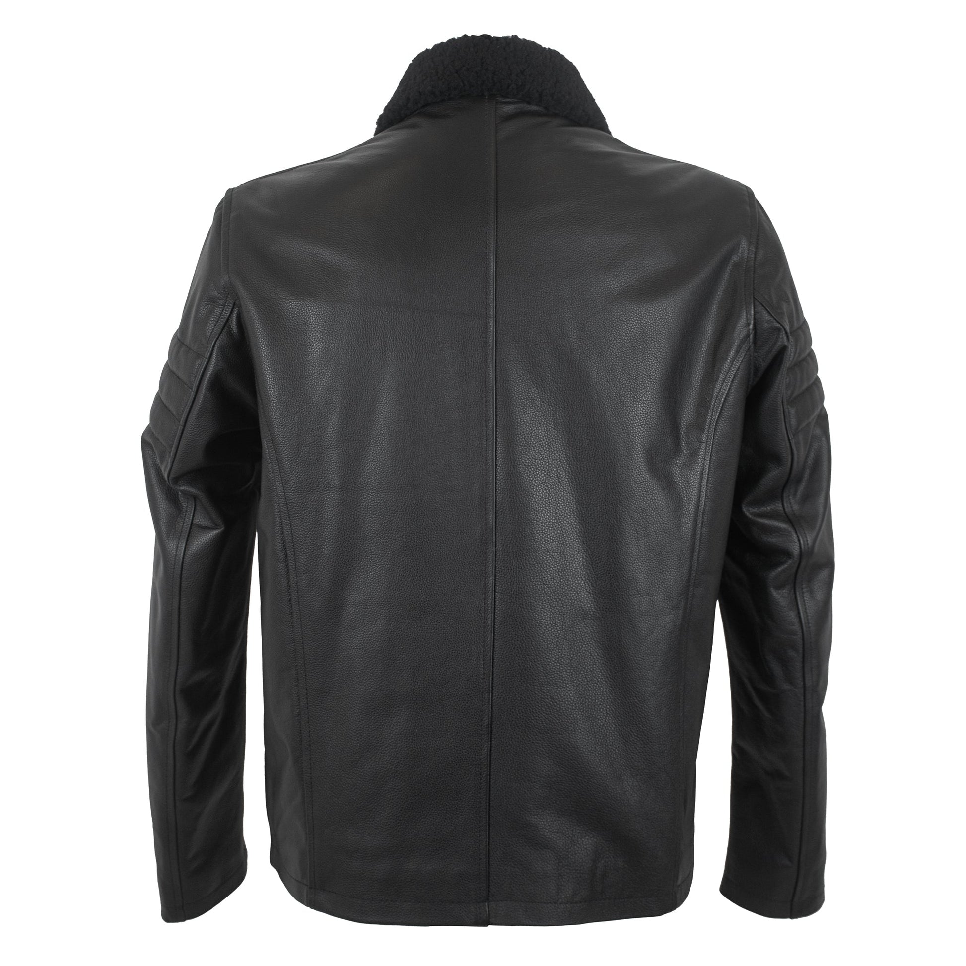 Black Stallion Cowhide Leather Jacket with Original Sheep Fur Collar