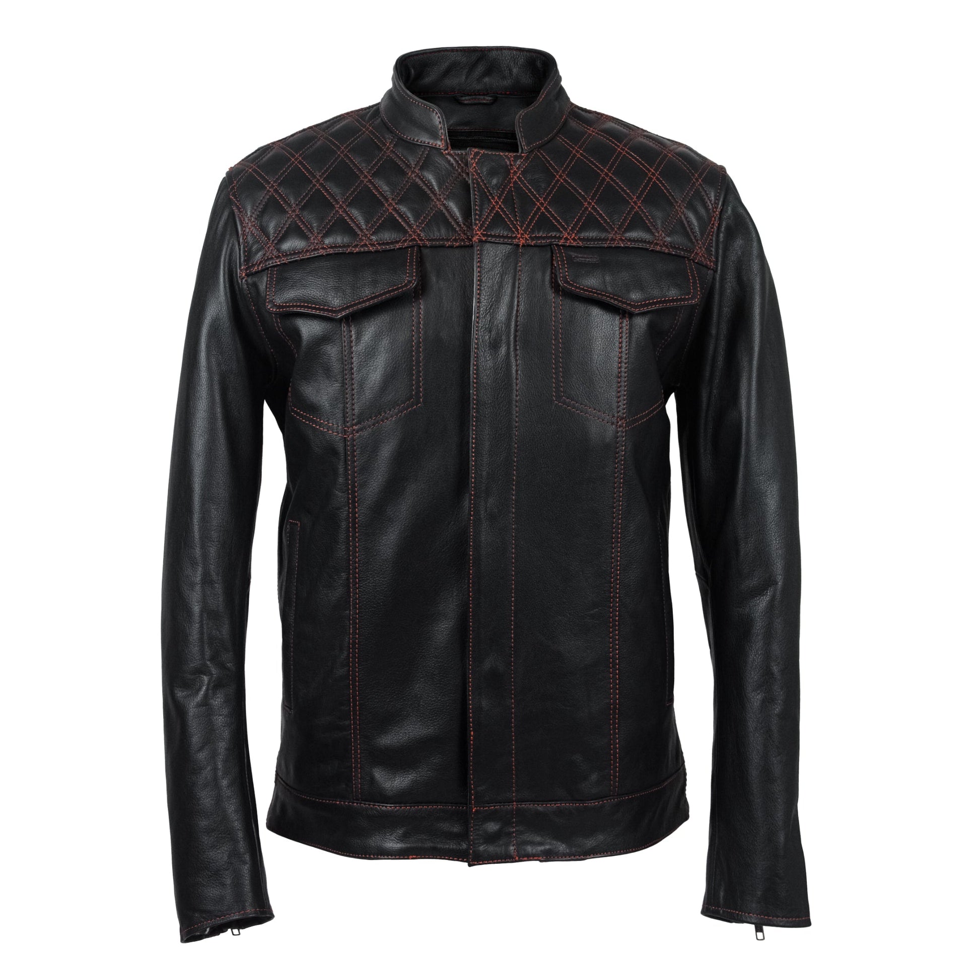 The Monarch Rider Jacket with Removable Vest by Levante Hub is the ultimate choice for riders and style enthusiasts alike. Expertly crafted from 100% genuine natural black leather, this Monarch Rider Jacket with Removable Vest blends rugged durability with modern design elements. Notably, the jacket features diamond-quilted shoulder panels and bold red contrast stitching, making it a standout piece.