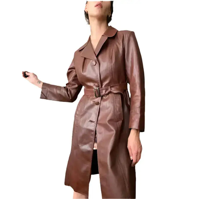 Vintage Chocolate Brown Leather Trench Coat – Timeless Style & Unmatched Comfort